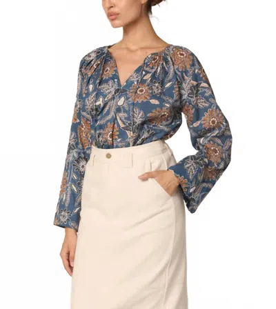 Allison Blouse In Magnolia Floral Print In Blue