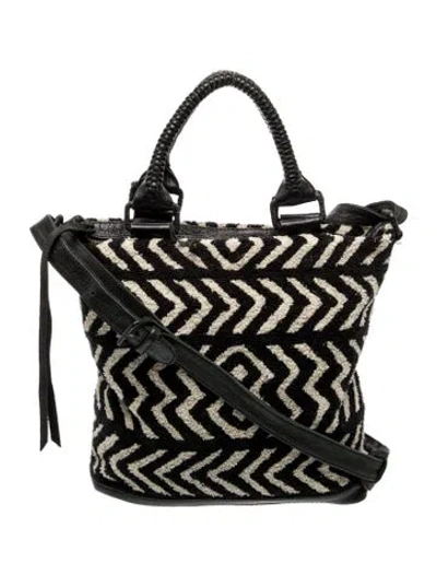 Cleobella Top Handle Bag Black & White Printed Antiqued Gold-Tone Hardware Rolled Handles & Single Shoulder Strap Leather Trim Embellishment & Single Exterior Pocket Twill Lining & Three Interior Pockets Zip Closure at Top | Cleobella Top Handle Bag in Black/White