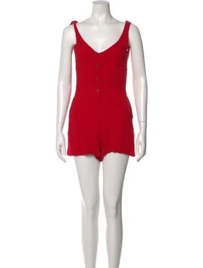 Pre-owned V-neck Romper In Red