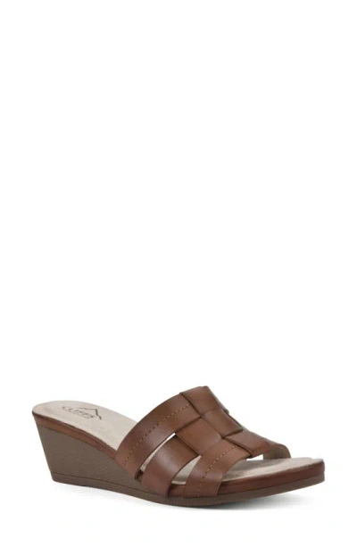 CLIFFS BY WHITE MOUNTAIN Candyce Wedge Sandal In Tan Burnished Smooth- Polyurethane