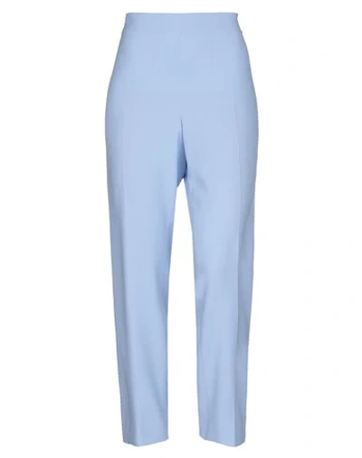 crepe, no appliqués, basic solid color, mid rise, regular fit, tapered leg, hook-and-bar, zip, no pockets, stretch , Color: Sky blue , Size: 10