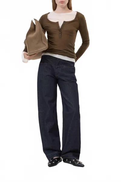 CLOSED Deep Neck Long Sleeve Tee In Marsh Green In Multi