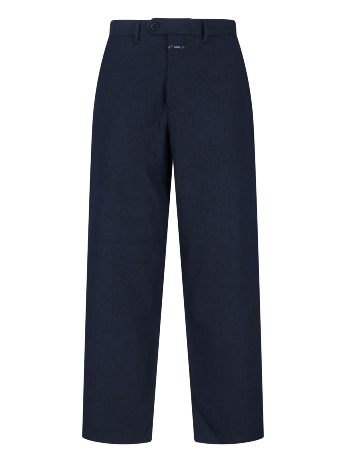 Closed Fairport blue wool blend trousers with high waist, belt loops, button and zip closure with logo label detail, two front pockets, two back button pockets, straight leg. Composition: 40% Wool, 30% Polyester, 30% Viscose