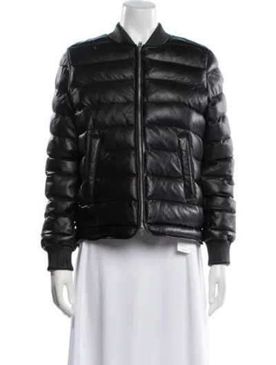 Closed Leather Bomber Jacket Black Leather Trim Embellishment & Stand Collar Zip Pockets & Zip Closure Fit: Jackets by Closed typically fit true to size. Reconsign: Unfortunately, this brand is no longer eligible for consignment. Unfortunately, due to restrictions, this item may not be eligible for shipping in all areas. | Closed Leather Bomber Jacket in Black, Women's XS