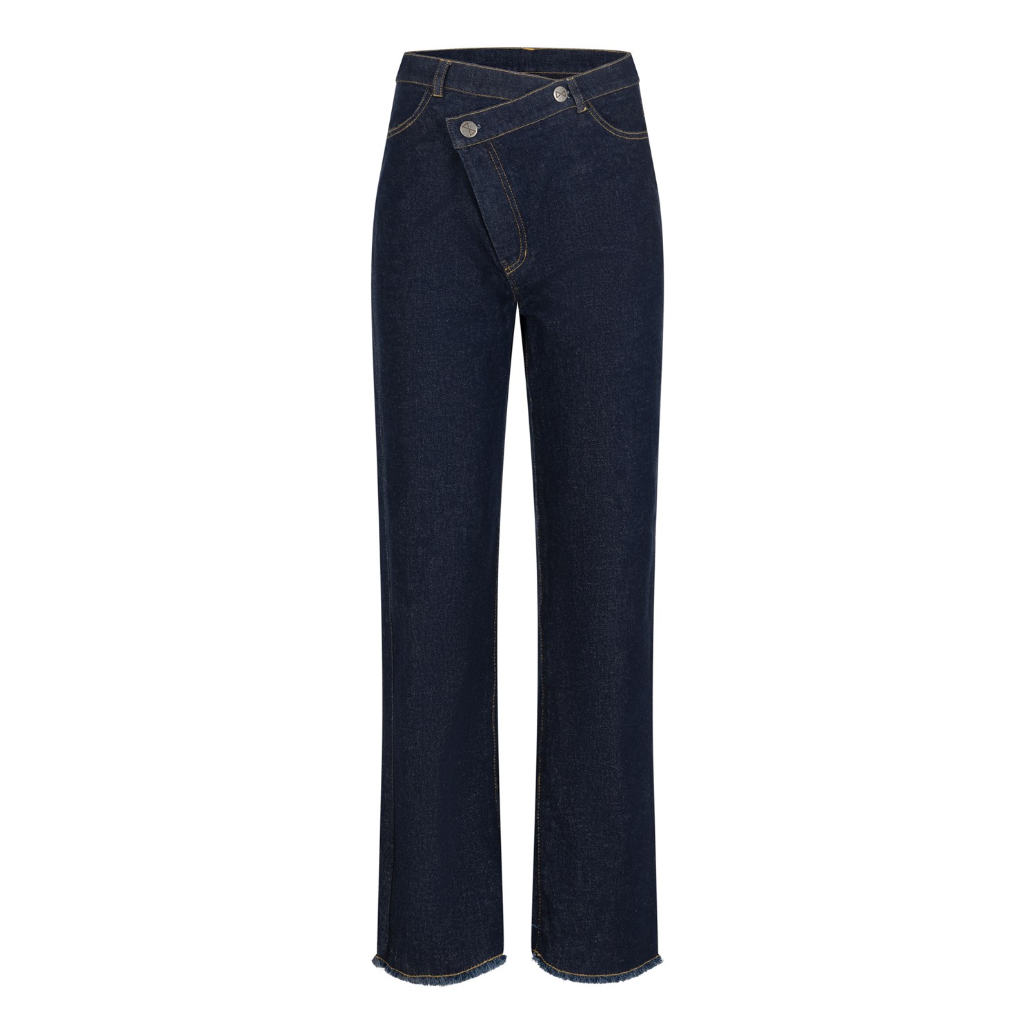Experiment with next-level denim. Our jeans have a modern wide-leg silhouette and an asymmetric closure for an upgraded casual look. Features :Full-length loose jeans with functional front and back pockets. Asymmetric button closure. Low-crotch cut. Please note that the jeans are not hemmed on purpose. 100% Handmade product. MATERIALS & CARE: Content: DenimCare: Machine wash on cold (30ºC) with a mild detergent