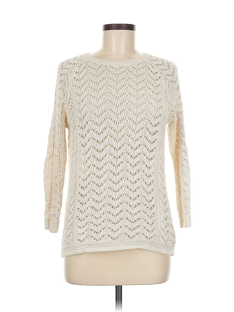 Club Monaco Pullover Sweater, Size: Medium. Item Details: Ivory, Chevron/Herringbone Pattern, Boatneck, 3/4 Sleeve, Women's Tops, Cotton/Viscose