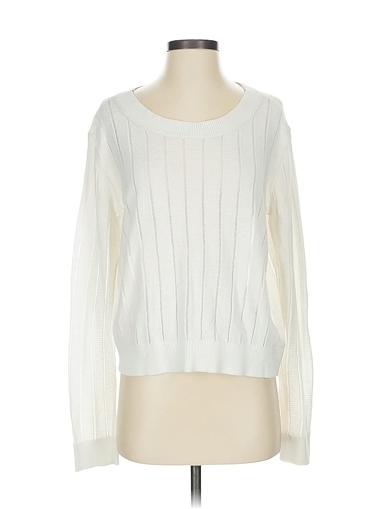 Club Monaco Pullover Sweater, Size: Large. Item Details: White, Scoop Neck, Long Sleeve, Women's Tops, Cotton/Nylon/Silk