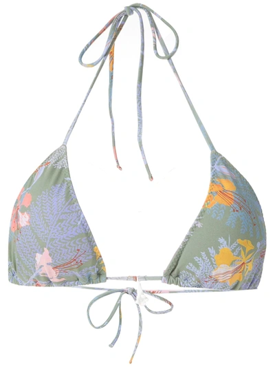 Lilac and green Chapin bikini top from Clube Bossa featuring spaghetti straps, an all-over print and a triangle style.