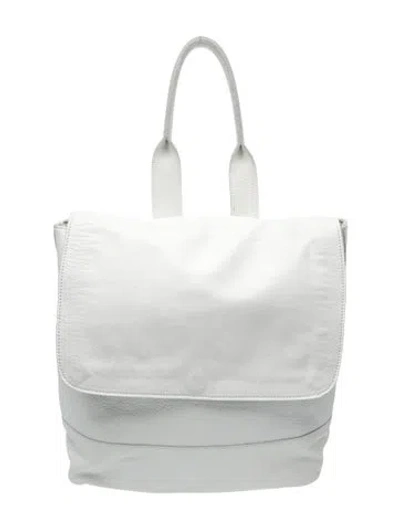 Clyde Backpack White Leather Silver-Tone Hardware Flat Handle & Dual Adjustable Shoulder Straps Twill Lining & Dual Interior Pockets Snap Closure at Front Unfortunately, due to restrictions, this item may not be eligible for shipping in all areas. | Clyde Leather Backpack in White