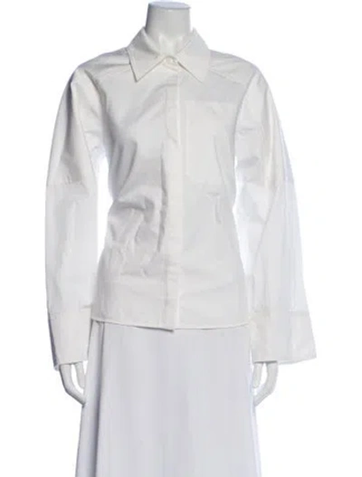 Co. Button-Up Top White Long Sleeve with Collar Designer Fit: Tops by Co. typically fit true to size. | Co. Long Sleeve Button-Up Top in White, Women's S