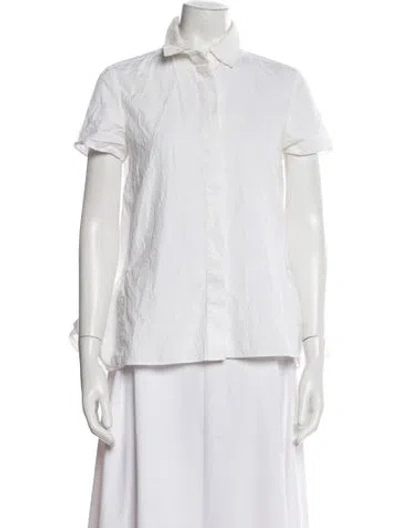 Co. Button-Up Top White Short Sleeve with Collar Button Closure at Front Designer Fit: Tops by Co. typically fit true to size. | Co. Short Sleeve Button-Up Top in White, Women's S