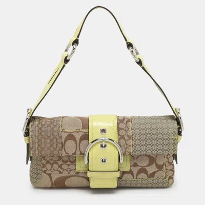 Pre-owned Beige/green Signature Patchwork Canvas And Python Buckle Shoulder Bag In Sand