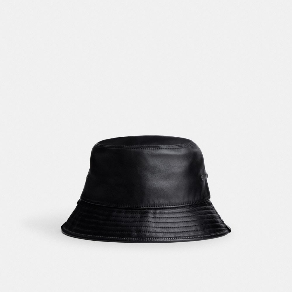 In a nod to Coach craftsmanship this retro-cool bucket hat is crafted of our buttery soft leather. It's detailed with our lightweight Signature jacquard made with a blend of organic cotton and recycled polyester-part of our commitment to rethinking and reducing our impact on the planet. Coach Leather Bucket Hat - Women's Size M/L - Black