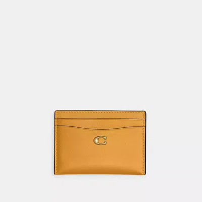 Crafted of refined leather detailed with our Signature hardware this case has four card slots and a center compartment to hold more cards or cash. Slip it in your pocket or stash inside your bag. Coach Essential Card Case - Women's - Brass/mustard Yellow