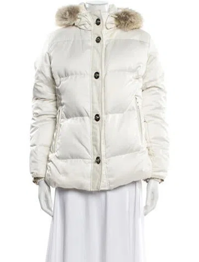 Coach Down Jacket White With Hood Fur Trim & Stand Collar Zip Pockets & Zip Closure Fit: Jackets by Coach typically fit true to size. Unfortunately, due to restrictions, this item may not be eligible for shipping in all areas. | Coach Down Jacket in White, Women's M