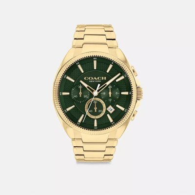 Combining discerning style with rugged functionality Jackson is made for life on the move. This gold tone chronograph features a dial with a date window and three subdials marking seconds minutes and hours. COACH Jackson Watch, 45 Mm - Men's - Gold