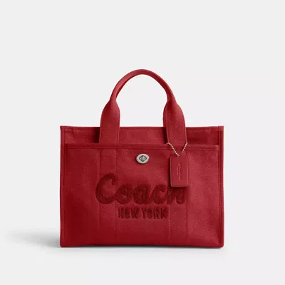 Carry as much (or as little) as you like with our lightweight Cargo tote. Detailed with our cursive Coach script embroidery and iconic turnlock closure this spacious carryall has an open interior with room for a 13 laptop two outside pockets for easy organization and a removable webbing strap for shoulder or crossbody wear. Crafted to last this versatile style is made with cotton sourced from farms that use regenerative agricultural practices* and inspired by our commitment to reducing our impact on the planet. Now no matter where you go with it you'll always be toting around a little extra love for the planet. *Say what? Just the bag itself not the trims and straps. But did you know that regenerative agricultural practices help to maintain and rejuvenate land increase biological diversity and soil health and could lead to increased carbon absorption? (Neat!) COACH Cargo Tote Bag - Women's - Silver/1941 Red