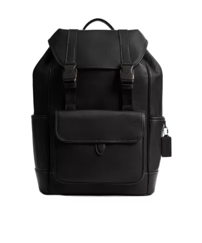 Made for a life in constant motion the League keeps your game plan on track. Crafted of smooth leather this roomy backpack is a comfortable choice for every day with its padded back and straps. Organized with multiple pockets inside and out the sporty style has a dedicated laptop sleeve and plenty of space for notebooks water bottles and other essentials. An exterior zipper gives easy access to the main compartment. COACH League Flap Backpack - Men's - Black