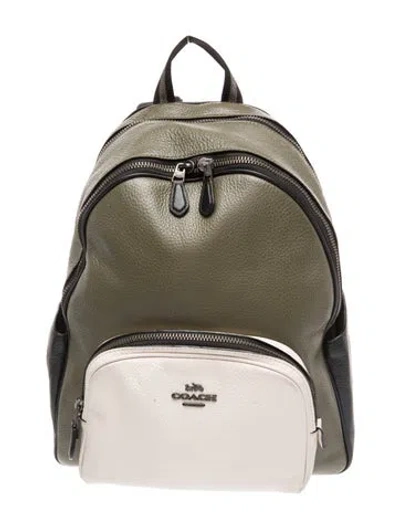 Coach Backpack Black Leather Colorblock Pattern Gunmetal Hardware Flat Handle & Dual Adjustable Shoulder Straps Faille Lining Zip Closure at Top Unfortunately, due to restrictions, this item may not be eligible for shipping in all areas. | Coach Leather Backpack in Black