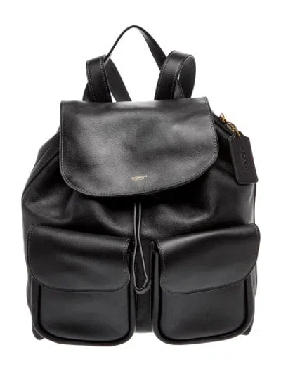 Coach Backpack Black Leather Gold-Tone Hardware Nylon Lining Flap Closure at Front Unfortunately, due to restrictions, this item may not be eligible for shipping in all areas. | Coach Leather Backpack in Black