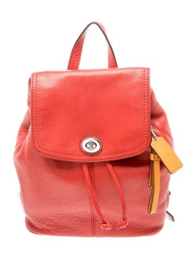 Coach Backpack Red Leather Silver-Tone Hardware Dual Adjustable Shoulder Straps Satin Lining & Three Interior Pockets Flap & Drawstring Closures at Top Unfortunately, due to restrictions, this item may not be eligible for shipping in all areas. | Coach Leather Backpack in Red