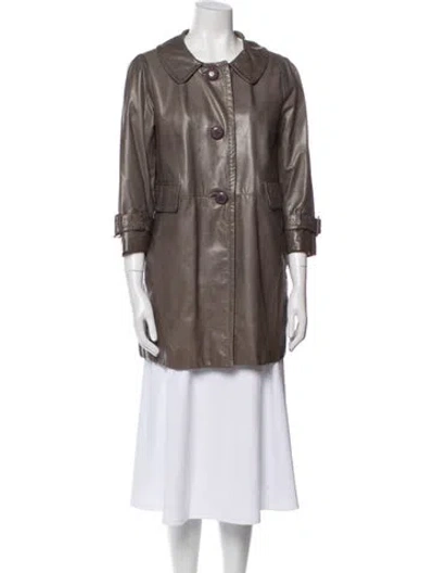Coach Leather Jacket Grey Pointed Collar Slit Pockets & Button Closure Fit: Jackets by Coach typically fit true to size. | Coach Leather Jacket in Grey, Women's S