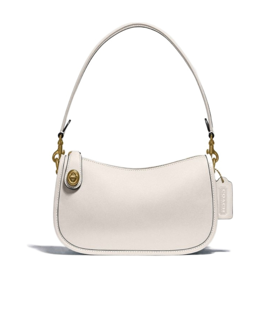 The Swinger Bag is part of The Coach Originals a collection of archival-inspired bags that celebrates our legacy and authentic New York heritage. This streamlined glovetanned leather style is based on a 1980s Coach design reimagined for today. Featuring our iconic turnlock closure the zip-top short-strap shoulder bag sits just beneath the underarm for hands-free convenience and includes a detachable strap to wear crossbody. Some styles are just too good to leave in the archives. COACH Swinger Bag - Women's - Brass/chalk