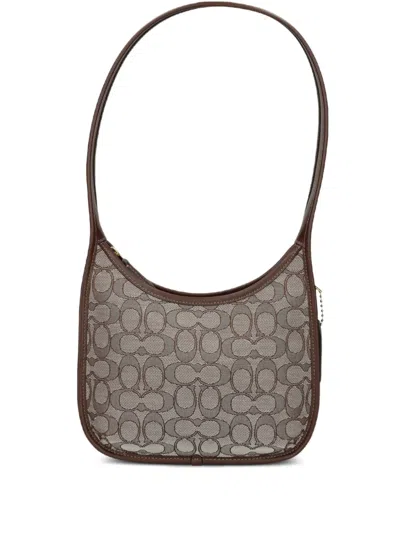 brown signature monogram pattern zip fastening flat shoulder strap exterior logo tag