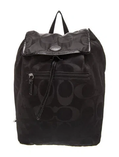 Coach Backpack Black Nylon Graphic Print Silver-Tone Hardware Canvas Lining Drawstring Closure at Top | Coach Nylon Backpack in Black