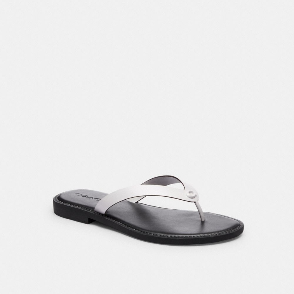 A streamlined style our Brianna flip flop offers a classic thong sandal silhouette. Crafted of smooth leather featuring our tonal Signature hardware for a subtle heritage touch the slip-on design is finished with a comfortable padded footbed and rubber outsole for great traction. COACH Brianna Flip Flop - Women's - Optic White - Size 6