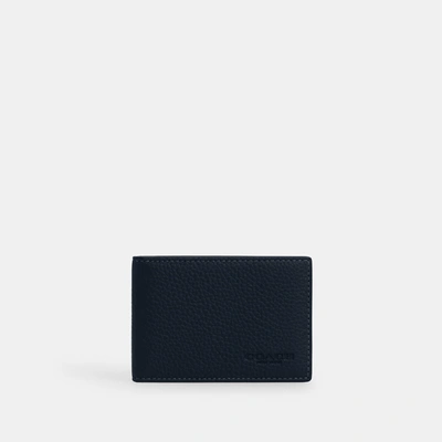 Refined pebble leather Two inside credit card slots Inside open pocket ID window Two outside credit card slots Outside open pocket 4 (L) x 2 3/4 (H) Style No. CM167 Coach Outlet Compact Billfold Wallet - Blue