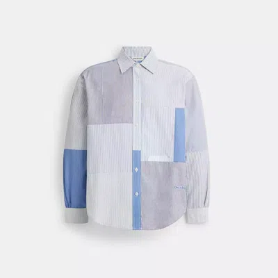Elevate your everyday: the Patchwork Striped Shirt is made from repurposed garments using existing materials to avoid the creation of new ones. Lightweight and airy it makes the perfect spring throw-on. Pair it with the matching pants for a head-to-toe coordination. Colors and patterns on each piece will vary reflecting the uniqueness of said garments. Coachtopia Patchwork Striped Shirt Size Large - Blue Multi