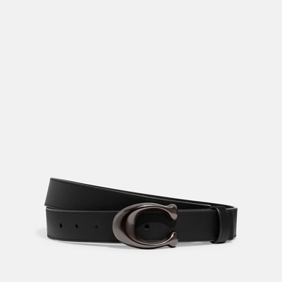 Featuring our C buckle this reversible belt gives you two looks in one. The fit is completely customizable-just cut the leather with scissors. COACH Sculpted C Buckle Cut To Size Reversible Belt, 32 Mm - Women's - Pewter/black