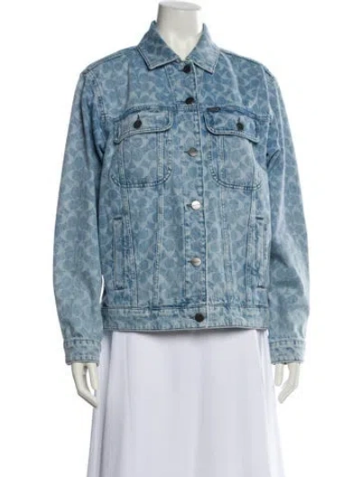 Coach Denim Jacket Blue & White Printed Pointed Collar Slit Pockets & Button Closure Fit: Jackets by Coach typically fit true to size. | Coach Printed Denim Jacket in Blue/White, Women's S