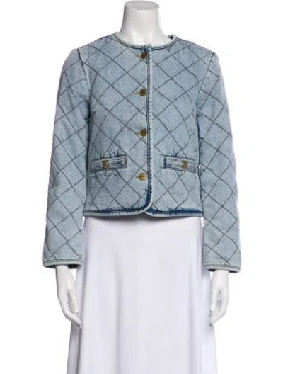 Coach Evening Jacket Blue Printed Collarless Button Closure Fit: Jackets by Coach typically fit true to size. | Coach Printed Evening Jacket in Blue, Women's XS