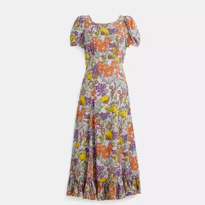 A little (re)love goes a long way. Sourced from the shelves of our Coach Repair Workshop this dress was lovingly restored to its original condition by our talented craftspeople. Keeping waste out of landfills and reducing our impact on the environment is all part of our commitment to doing better for the planet (and all of us). A feel-good find it's your chance to get one of our most-loved styles if you missed out the first time. Wear it love it pass it on. Did someone say garden party? Featuring a vivid vintage-inspired floral print and puff shoulders for a bit of volume this lightweight midi dress is finished with a V-back and gathered hem. Coach Restored Floral Midi Dress - Women's - Lavender Multi - Size 2
