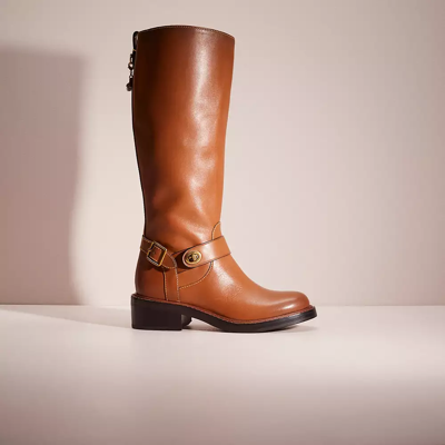 A little (re)love goes a long way. Sourced from the shelves of our Coach Repair Workshop this pair of boots was lovingly restored to its original condition by our talented craftspeople. Keeping waste out of landfills and reducing our impact on the environment is all part of our commitment to doing better for the planet (and all of us). A feel-good find it's your chance to get one of our most-loved styles if you missed out the first time. Signature craftsmanship and unexpected details combine on the Sutton boot. Crafted of genuine Coach leather it features heavy topstitching and our iconic turnlock and buckle hardware. A sturdy stacked heel makes the versatile silhouette street-ready. Coach Restored Sutton Boot - Women's Size 5 - Saddle