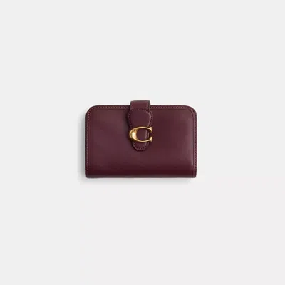 A little (re)love goes a long way. This Tabby Medium Wallet is a gently worn design restored to its original condition by the talented craftspeople at our Coach Repair Workshop. Keeping waste out of landfills and reducing our impact on the environment is all part of our commitment to doing better for the planet (and all of us). A feel-good find it's your chance to get one of our most-loved styles if you missed out the first time. Wear it love it pass it on. Crafted of smooth leather this bi-fold Tabby medium wallet is a modern take on an archival 1970s Coach design. Featuring an exterior zip pocket for coins earbuds and other small essentials it unsnaps to reveal ten card slots slip pockets and a full-length bill compartment. Coach Restored Tabby Medium Wallet - Women's - Brass/merlot