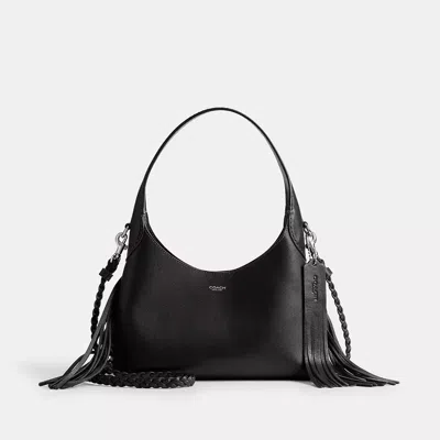 Our Brooklyn is an elegant minimalist silhouette???with a distinctly New York attitude. A compact design with an easy magnetic closure and swingy bohemian-inspired fringe trim the hobo style 23 is crafted of natural grain leather with beautiful texture and soft feel. Featuring room for the essentials and a multifunction pocket for organization carry it by hand or attach the braided leather strap to wear on the shoulder or crossbody. COACH?? Women's Brooklyn Shoulder Bag 23 With Fringe in Black Leather