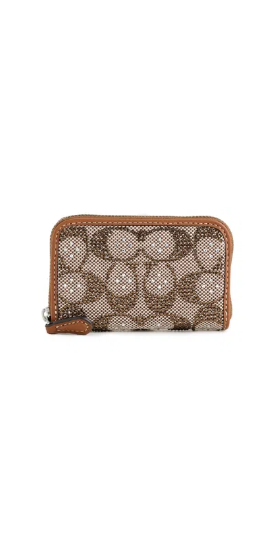 Jacquard. Divided interior compartments. Monogram pattern and crystal accents. Zip closure. Card slots at interior. Lining: Leather. Weight: 2oz / 0.06kg. Imported, Vietnam. Measurements: Height: 2.75in / 7cm Length: 4.25in / 11cm Depth: 0.75in / 2cm