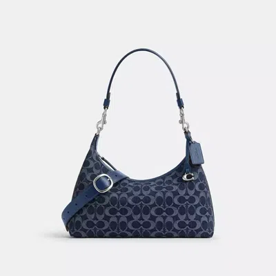 Timeless with a twist our Juliet is a sophisticated style with a slouchy relaxed shape. Finished with a detachable shoulder strap and a detachable crossbody strap for versatile wear the one compartment refined leather and Signature denim design features an inside pocket to organize essentials. It's sleek spacious stylish functional (basically everything you want in a bag). The distinctive silhouette is crafted with cotton sourced from farms that use regenerative agricultural practices???those that help to maintain and rejuvenate land increase biological diversity and soil health and could lead to increased carbon absorption. It reflects our ongoing commitment to helping reduce our impact on the planet. COACH?? Women's Juliet Shoulder Bag in Blue Denim
