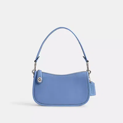 The Swinger Bag is part of The Coach Originals a collection of archival-inspired bags that celebrates our legacy and authentic New York heritage. This streamlined glovetanned leather style is based on a 1980s Coach design reimagined for today. Featuring our iconic turnlock closure the zip-top short-strap shoulder bag sits just beneath the underarm for hands-free convenience and includes a detachable strap to wear crossbody. Some styles are just too good to leave in the archives. Coach Swinger Bag - Women's Purses - Silver/mist Blue
