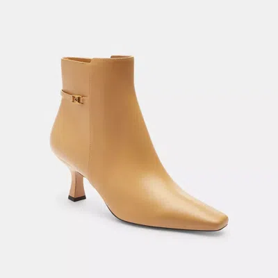 Featuring our Heritage C Plaque the Rebecca ankle bootie will take you seamlessly from work to weekend. Crafted of smooth leather the sleek kitten heel silhouette is finished with a side zip closure. COACH Rebecca Bootie - Women's - Tan - Size 7.5 B