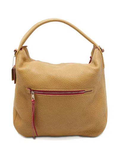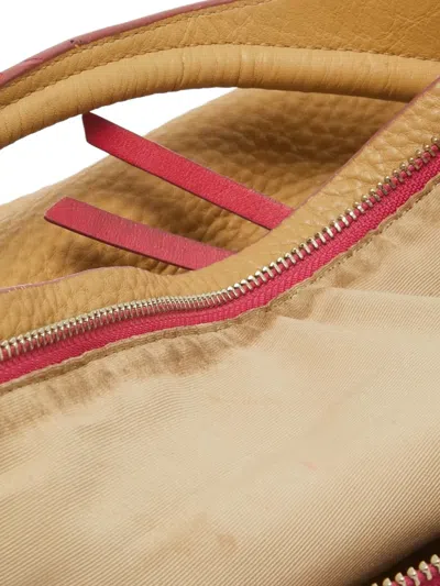 beige leather single top handle top zip fastening rear zip-fastening pocket main compartment gold-tone hardware detachable and adjustable shoulder strap Condition: GOOD. This previously owned and used item is in good condition with minimal signs of use. This may include fading of material or plating and scratches.
