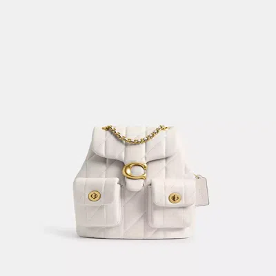 A modern take on an archival 1970s Coach design our versatile Tabby backpack is a hybrid style that easily converts from backpack to crossbody or shoulder bag. Crafted of quilted plush ultra-soft nappa leather the compact style has convenient cargo front pockets detailed with our iconic turnlock closures and adjustable leather-and-chain back straps that convert to a crossbody strap. It's finished with our Signature hardware for a heritage touch. COACH Tabby Backpack With Pillow Quilting - Women's - Brass/Chalk
