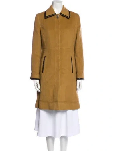 Coach Wool Coat Neutrals Leather Trim Embellishment & Pointed Collar Knee-Length Slit Pockets & Snap Closure Fit: Coats by Coach typically fit true to size. | Coach Wool Coat in Neutrals, Women's S
