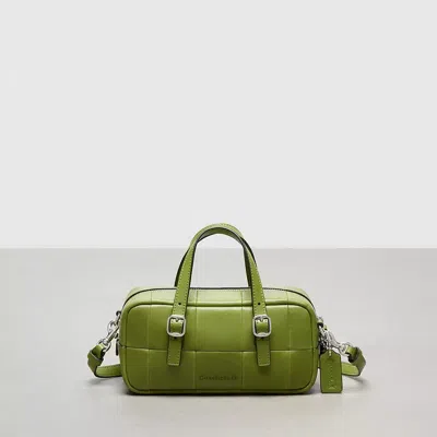 Mini but mighty: this fun-sized satchel is ingeniously upcrafted from the leather scraps left over after a Coach Brooklyn Bag has been cut from a leather hide. Pair it with your favorite going-out fit-it holds your keys wallet sunglasses and more. Finished with a zip-top closure this version comes with top handles and a detachable crossbody strap (so you can wear it your way). This product is part of our Alter/Ego Collection a new range of bags crafted with the specific leather scraps left over from the creation of iconic Coach styles-including the Tabby Hampton and Brooklyn bags-that might otherwise have gone to landfill. With this collection we're going beyond making with waste by finding ways to design out waste as part of our ongoing mission to build a more circular future for fashion. Coachtopia Alter/Ego Mini Satchel Bag In Checkerboard Upcrafted Leather With Crossbody Strap Designer Purses - Dark Lime