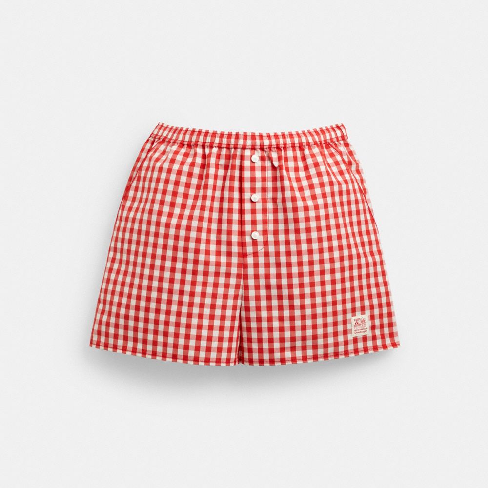 COACH Topia Loop Gingham Boxer Shorts In Red/cloud