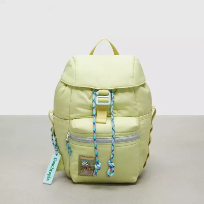Monomaterial made mini. This smaller version of our bestselling Coachtopia Loop backpack is an easygoing style that fits a phone wallet keys-even a small tablet. This product is part of our Coachtopia Loop collection a range of pieces crafted with at least 98% recycled PET plastic (r PET) and designed with a monomaterial approach. This means that it can be recycled multiple times as part of our Coachtopia closed loop system. Return it to us when it's no longer usable and we'll turn it into a new product according to our Made Circular design principles. (Learn more about Made Circular on our about pages.) Coachtopia Loop Mini Backpack - Pale Lime