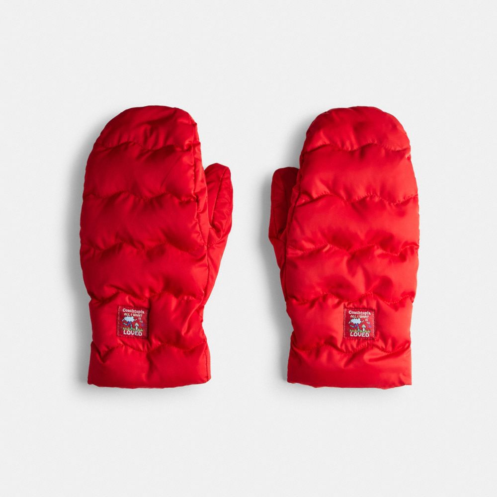 Helping hands: weather winter's worst in these warm quilted mittens. Embellished with wavy cloud embroidery they're crafted in 100% recycled polyester and finished with a classic Coachtopia patch. This product is part of our Coachtopia Loop collection a range of pieces crafted with at least 98% recycled PET plastic (r PET) and designed with a monomaterial approach. This means that it can be recycled multiple times as part of our Coachtopia closed loop system. Coachtopia Loop Mittens Size XS/S Purses - Rosebud Red